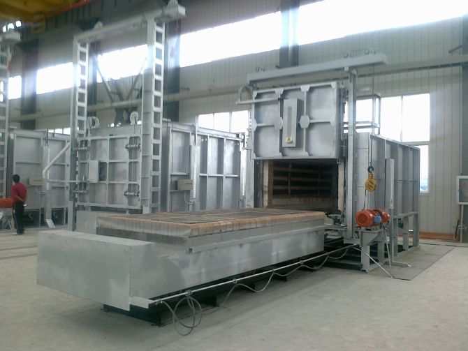 台车式退火炉钢 结构主要包括炉壳支撑框架和驱动设备支撑框架(平台钢结构)。考虑到炉壳潜在的热胀冷缩因素,各段炉壳支撑框架与平台钢结构采川相互独立结构。各炉段的底 辊室先安装就位,以自己四角立柱为基准完成4个基准立柱焊接;再焊接左右两个整体端板.而操作侧和传动侧各由几块独立制造的侧板从下至上依次焊接安装,最 后安装顶辊室顶辊室也有4个基准立柱,与炉体4个从准命柱定位安装焊接即可完成台车式退火炉炉壳制造安装几一个加宽的平台安装在传动侧,用于存放炉顶盖, 原则!_